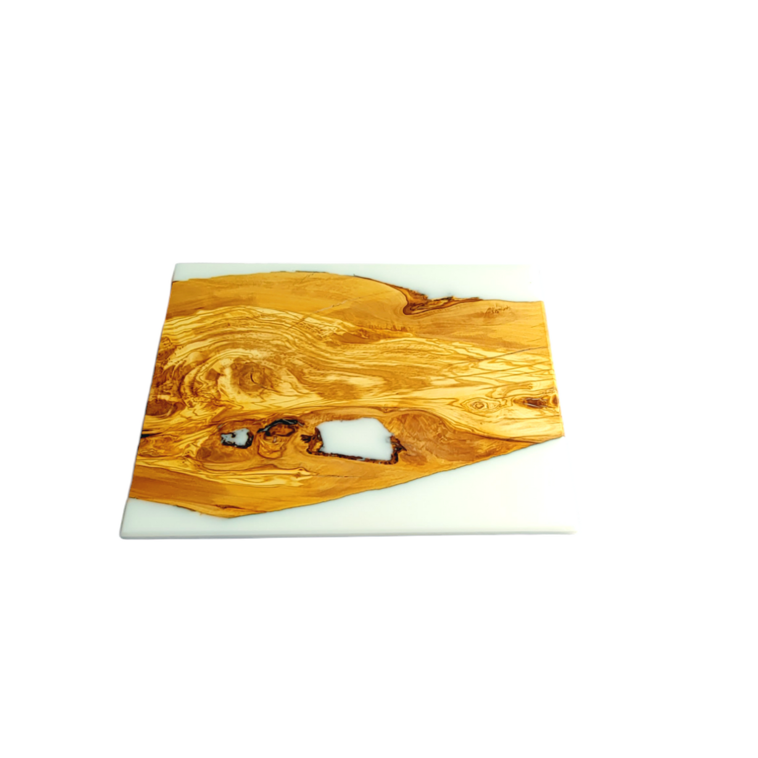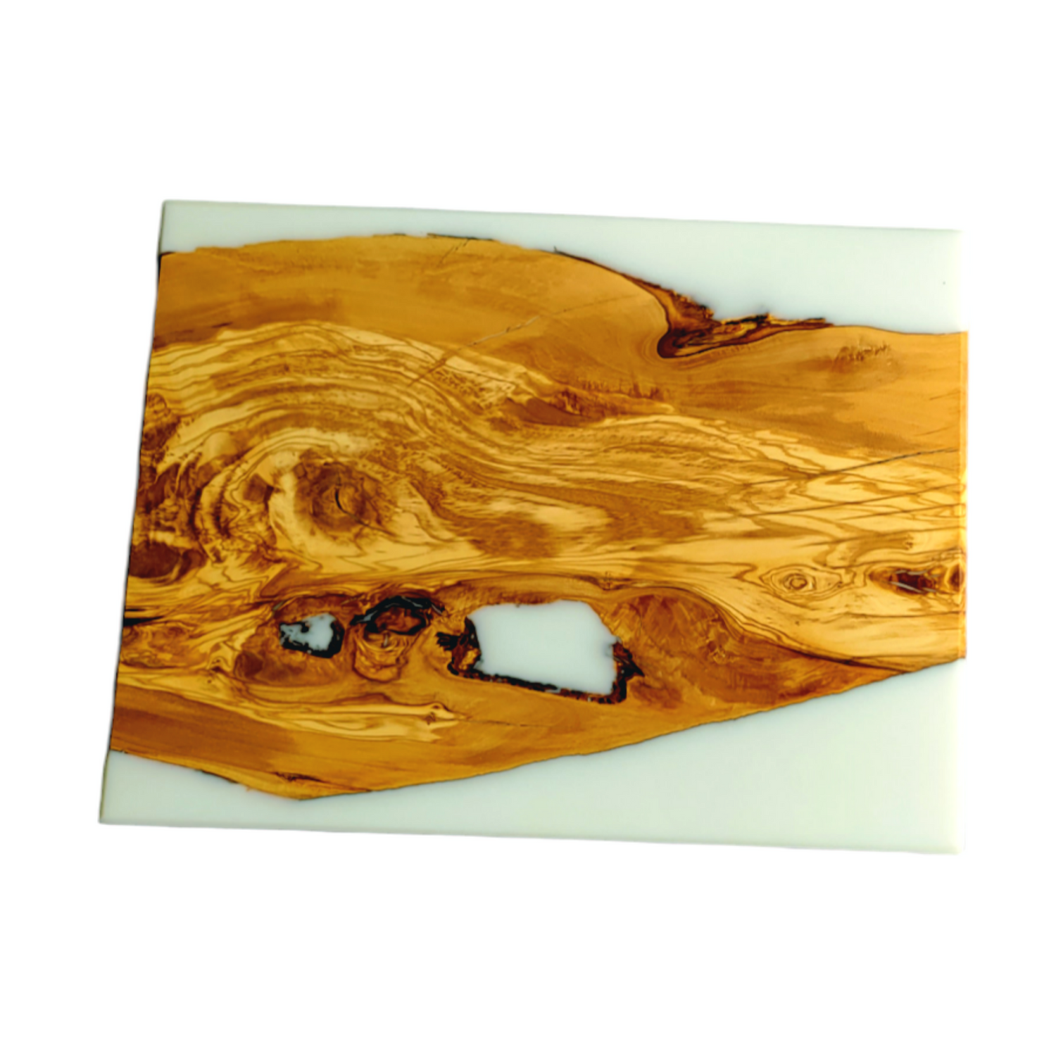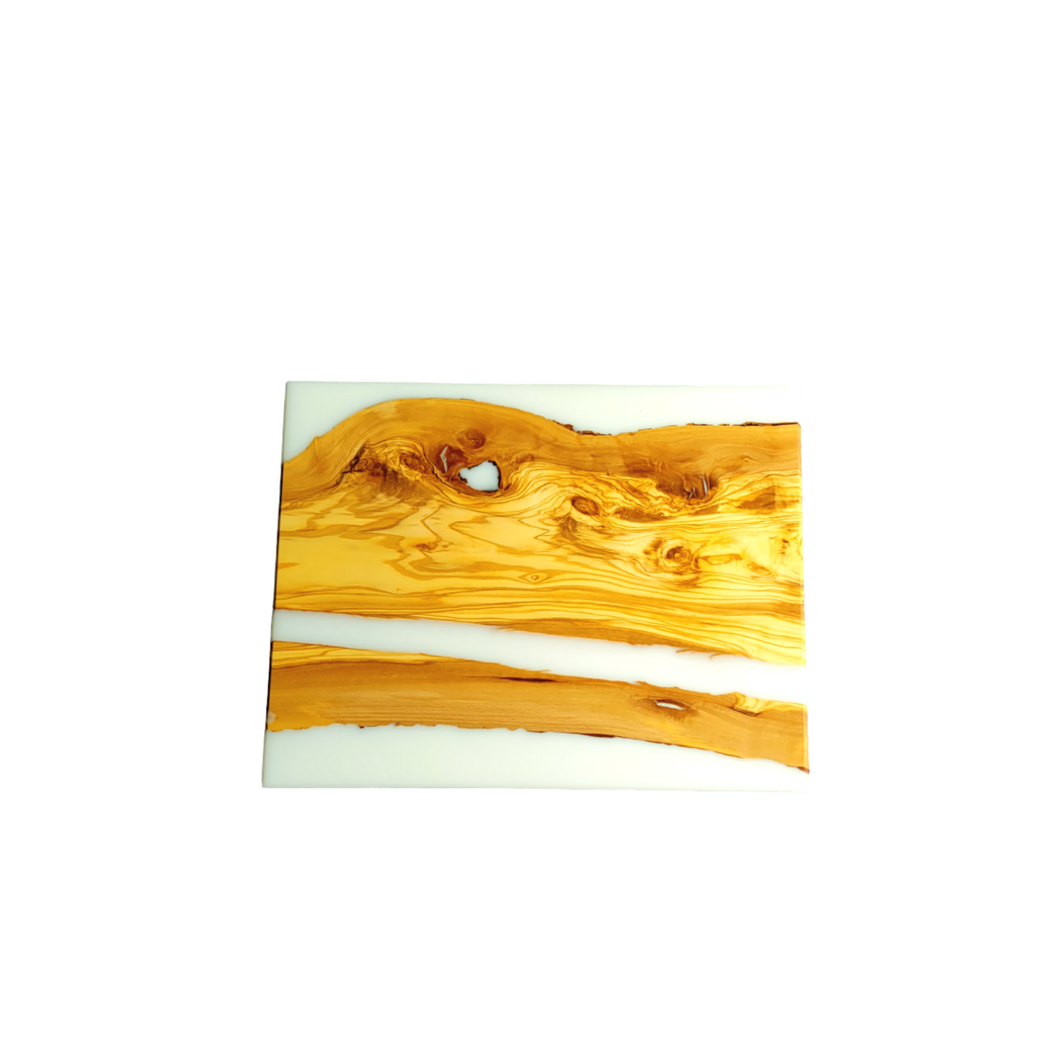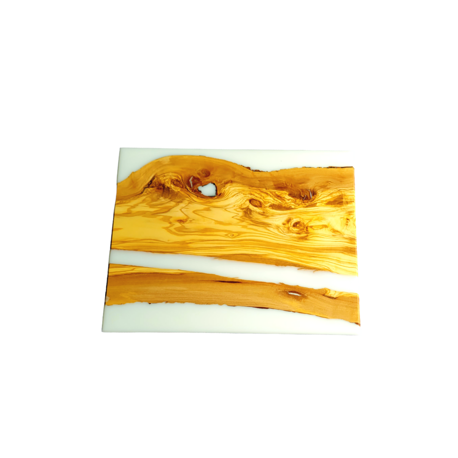 Cutting Board Olive Wood slice And White Epoxy