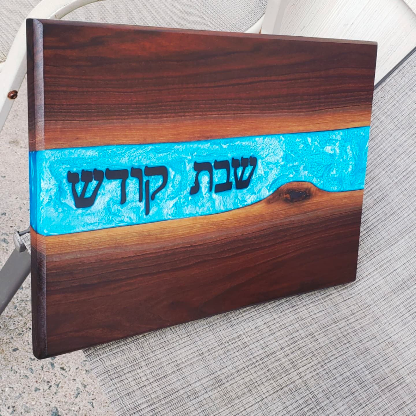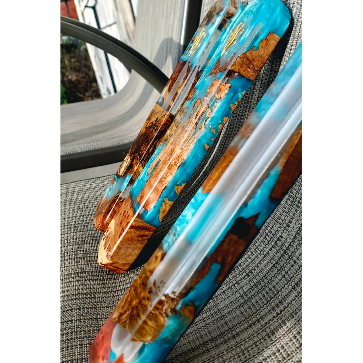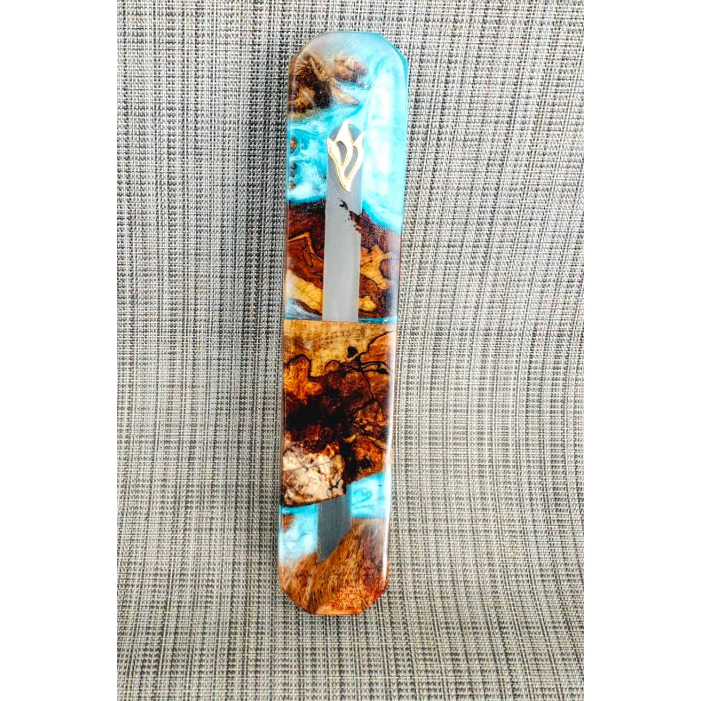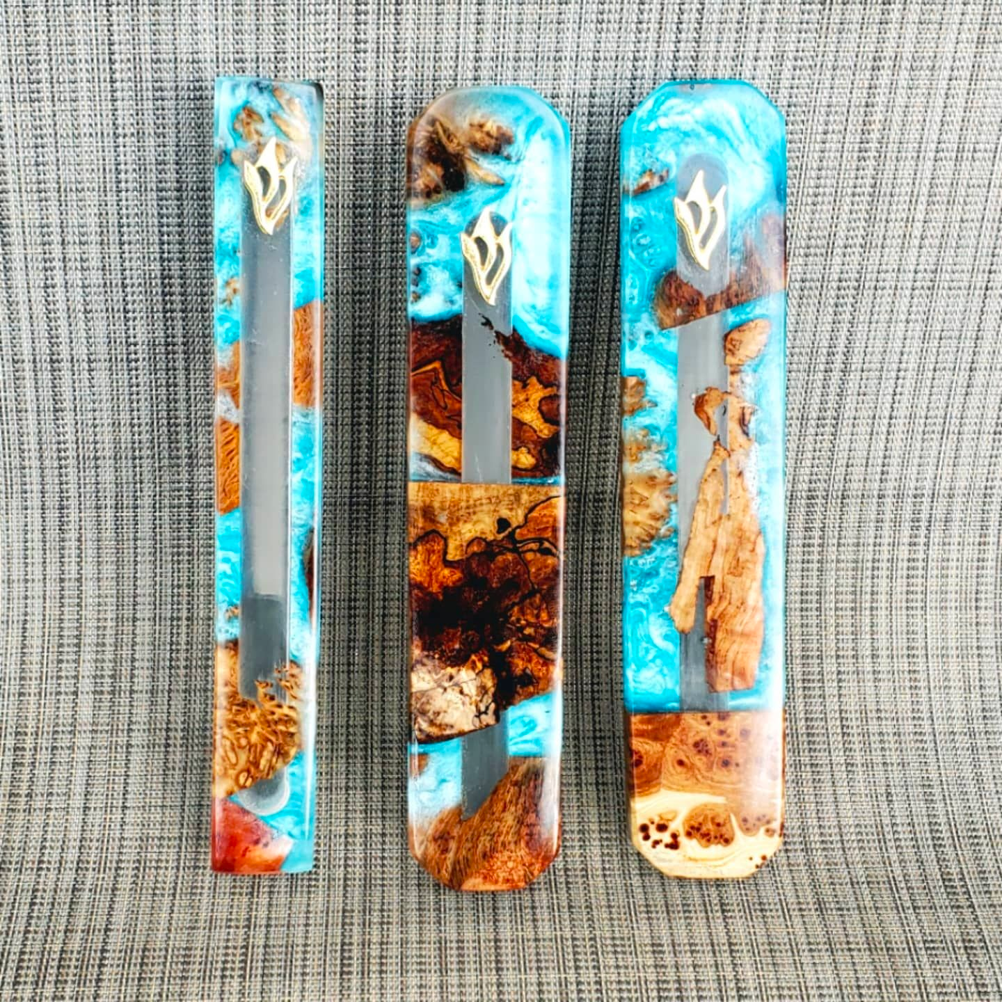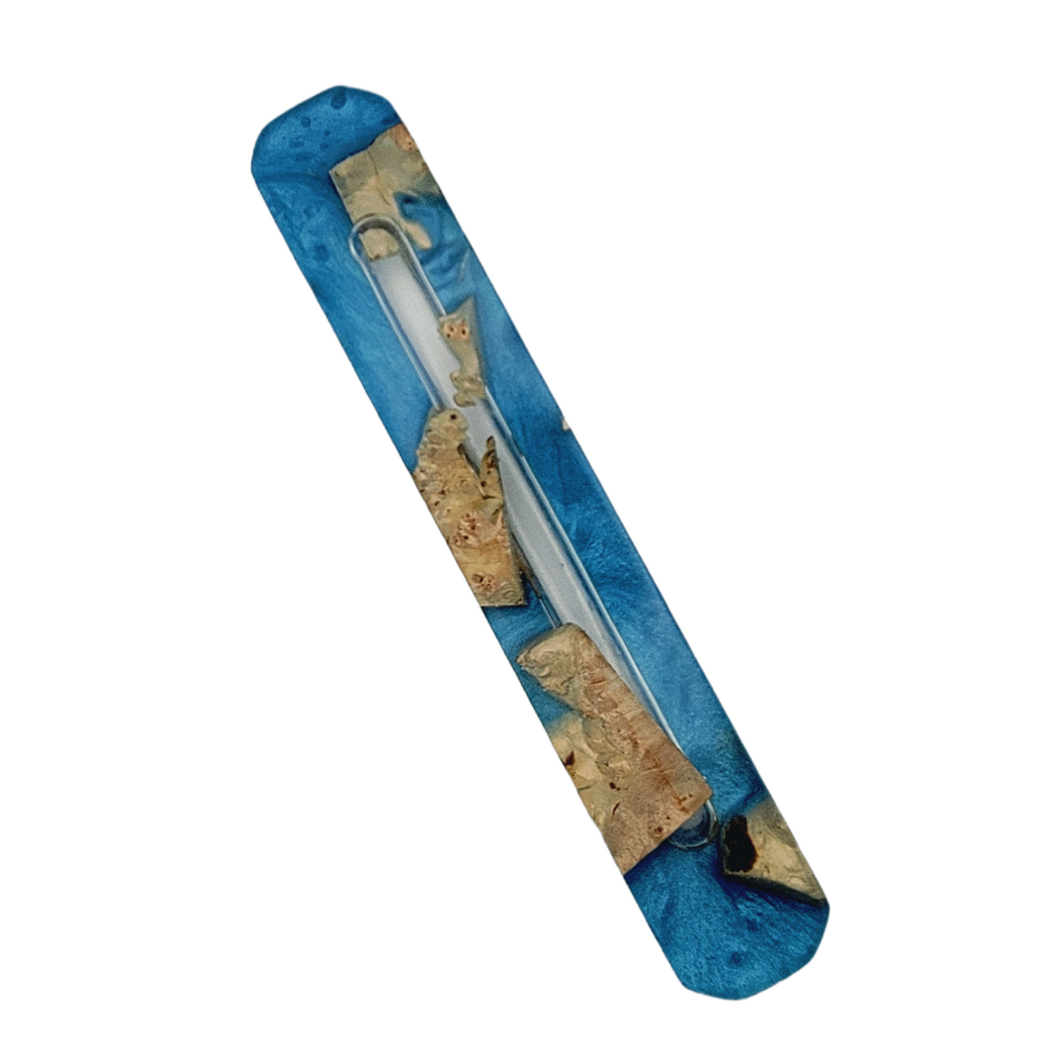 Mezuzah Holder Burl Wood With Blue Epoxy Background and Clear Epoxy