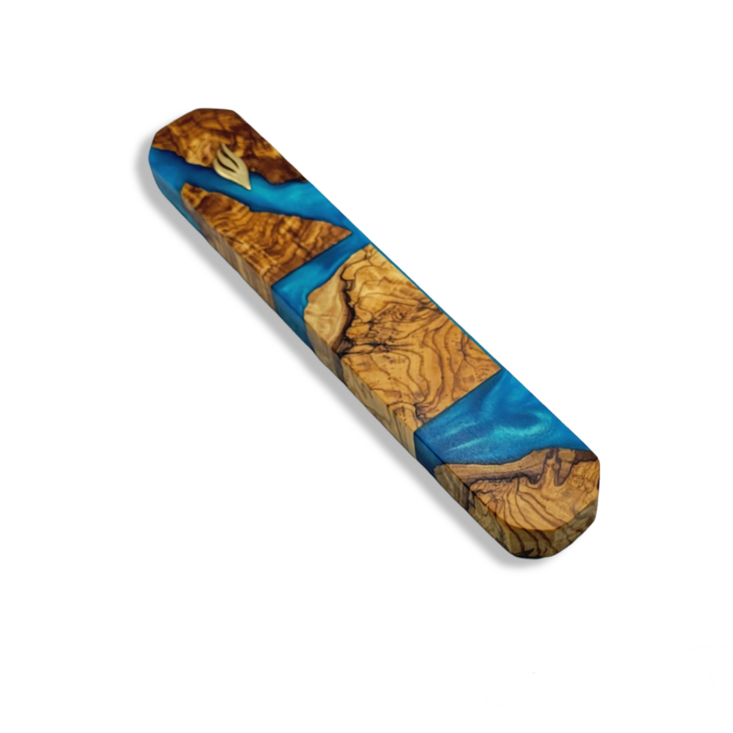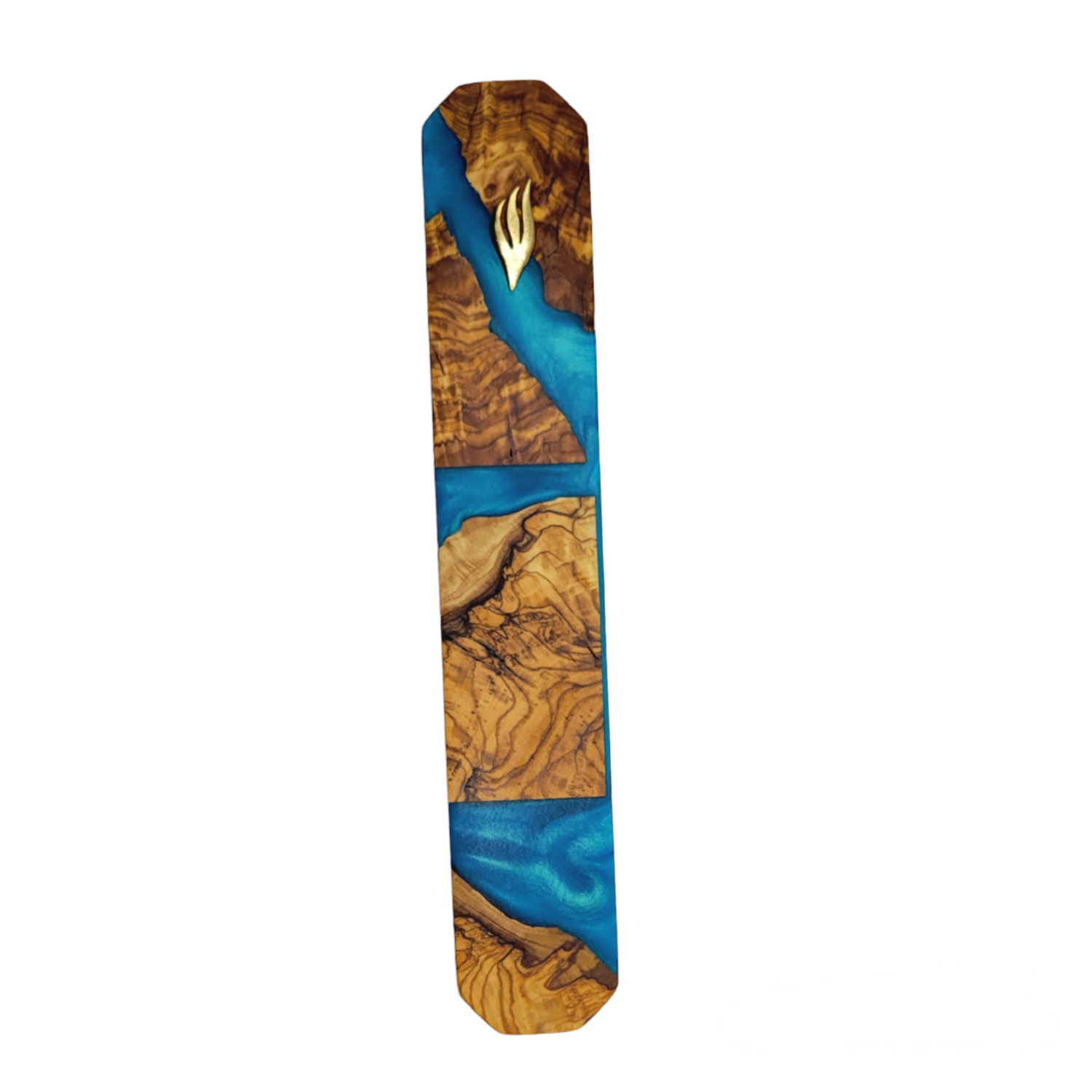 Mezuzah Holder Olive Wood - Blue Epoxy