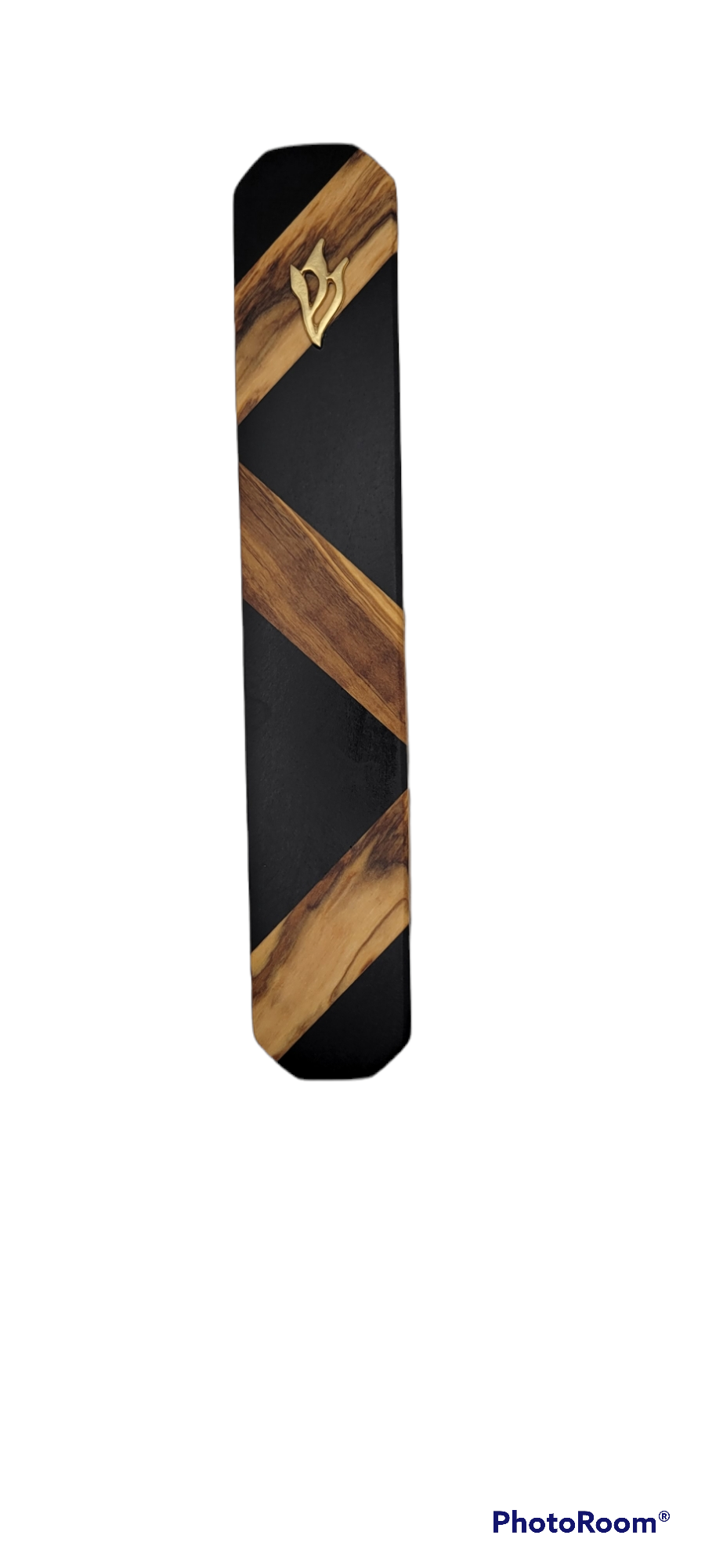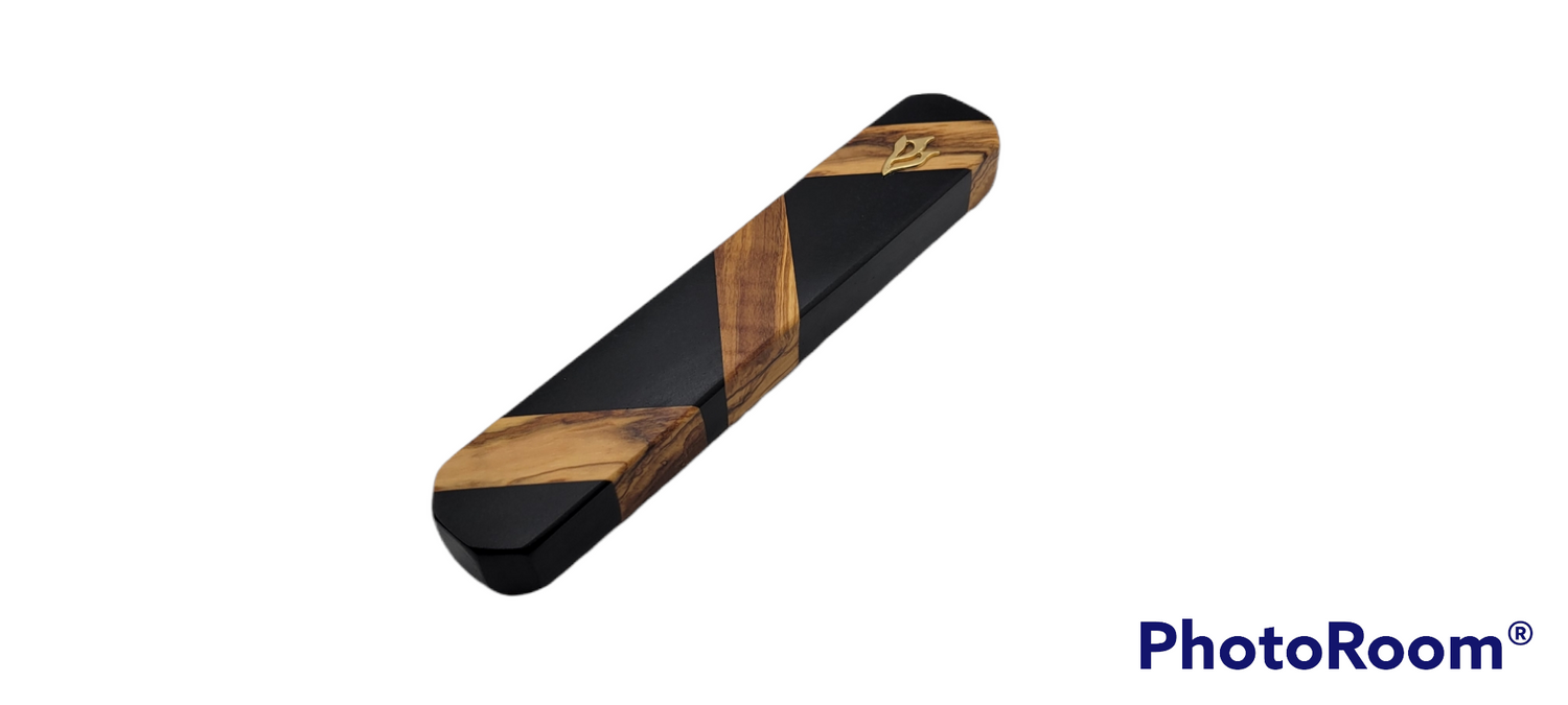Mezuzah Holder strips of olive wood With Black Epoxy