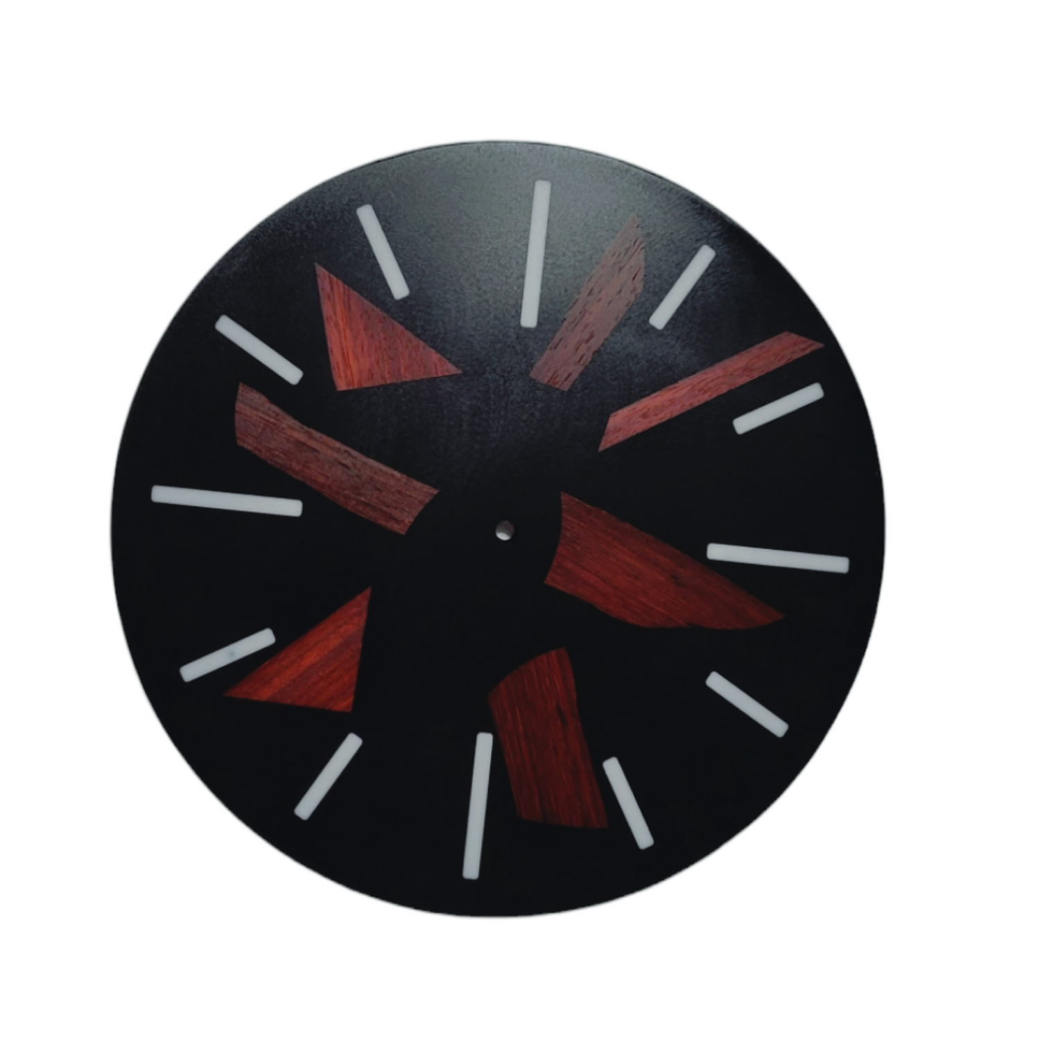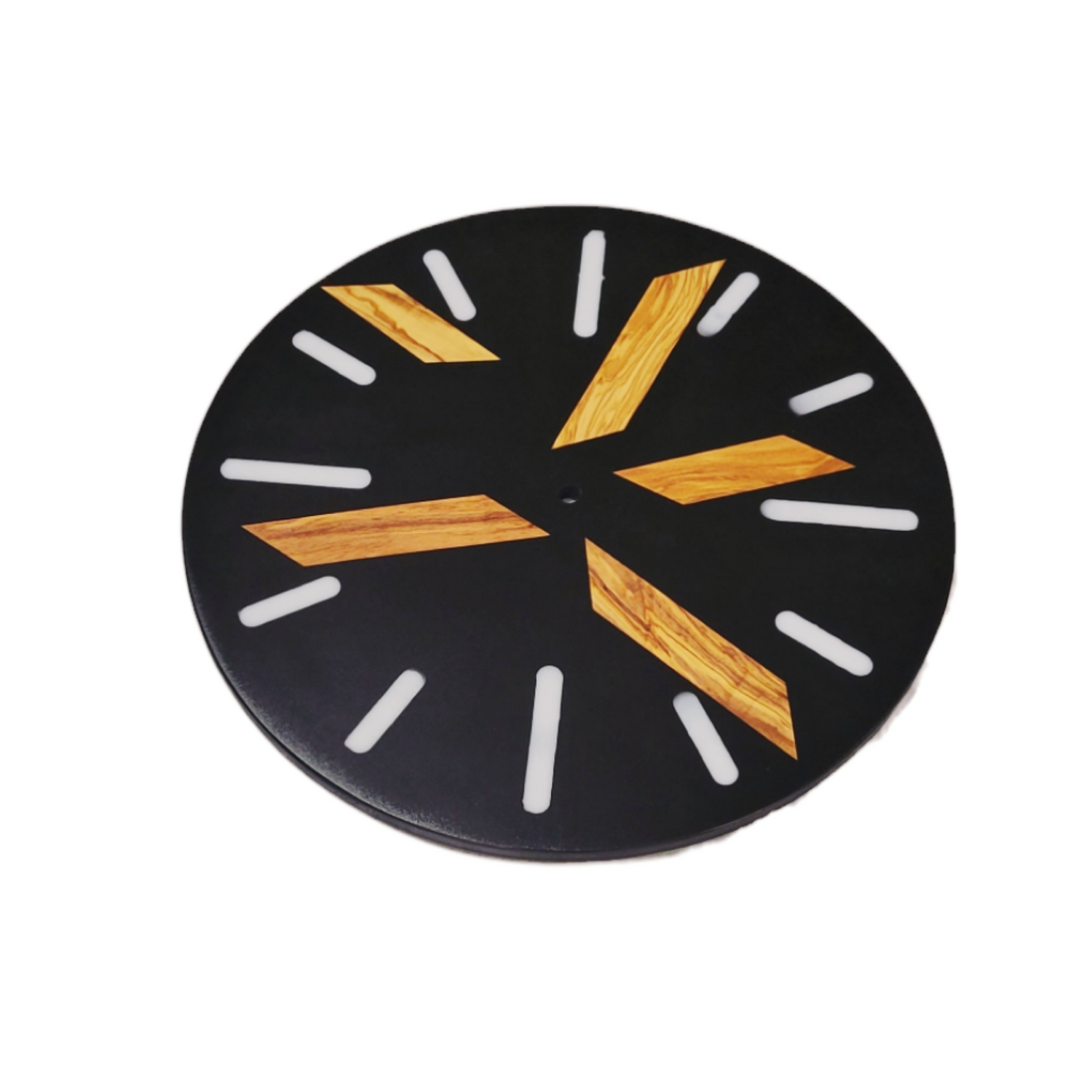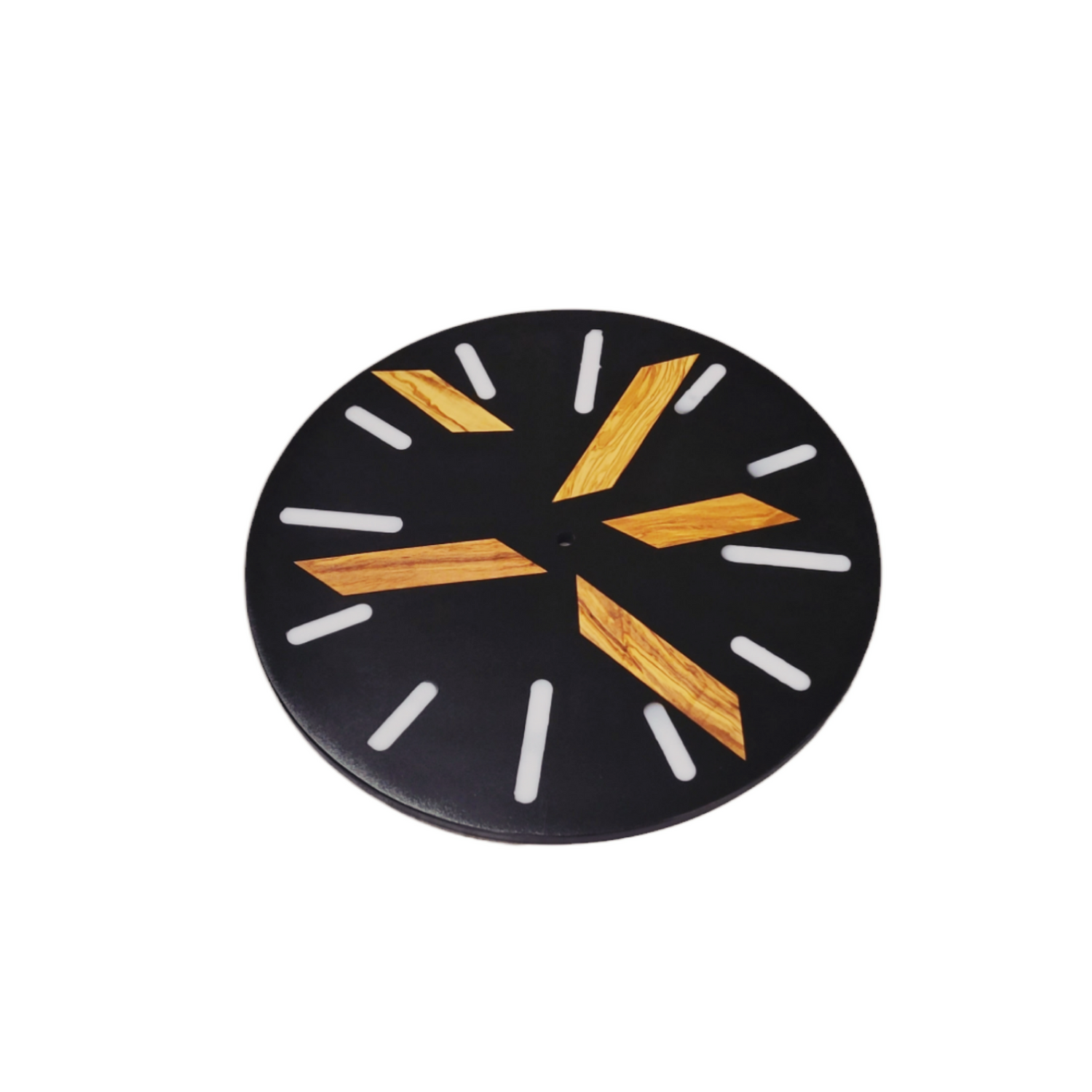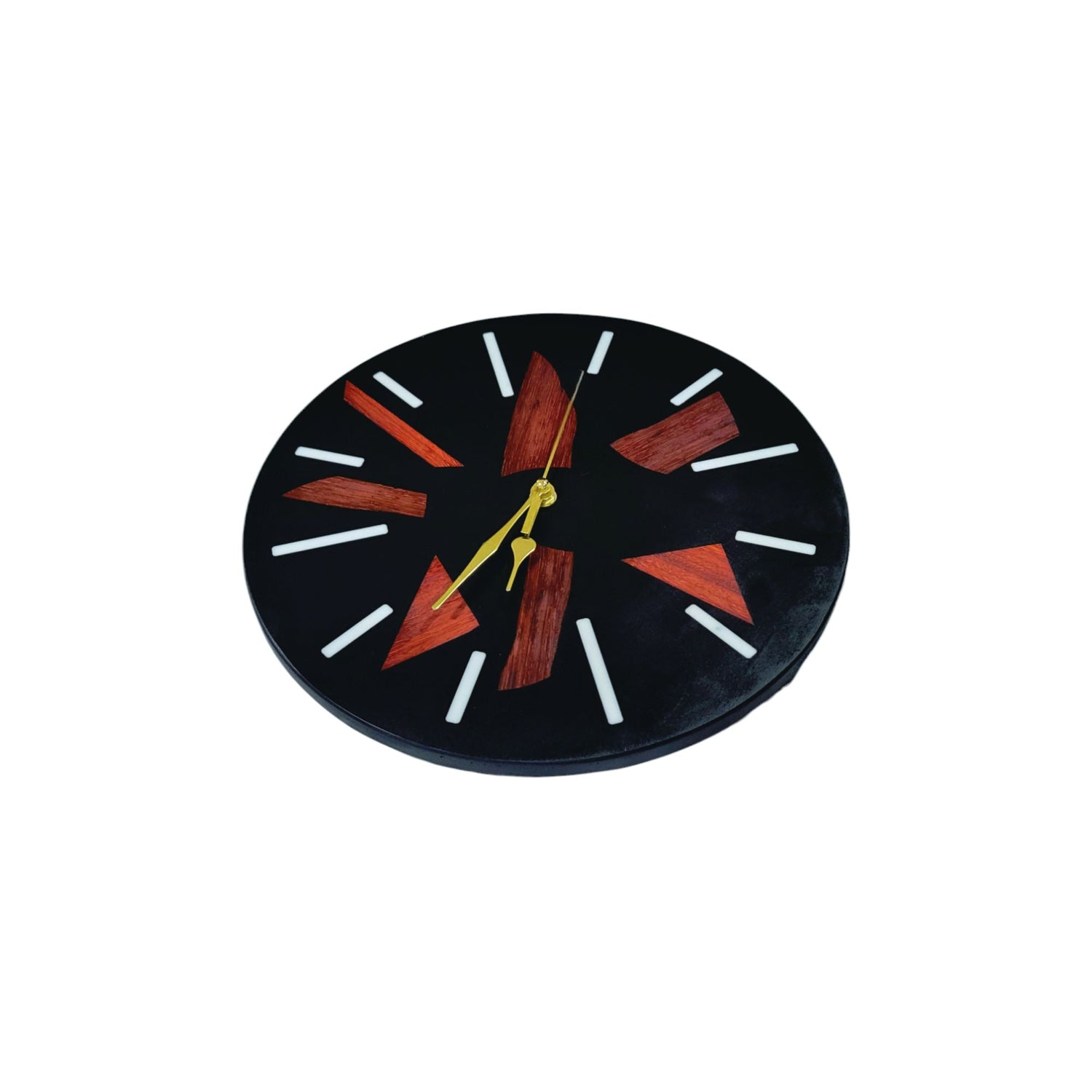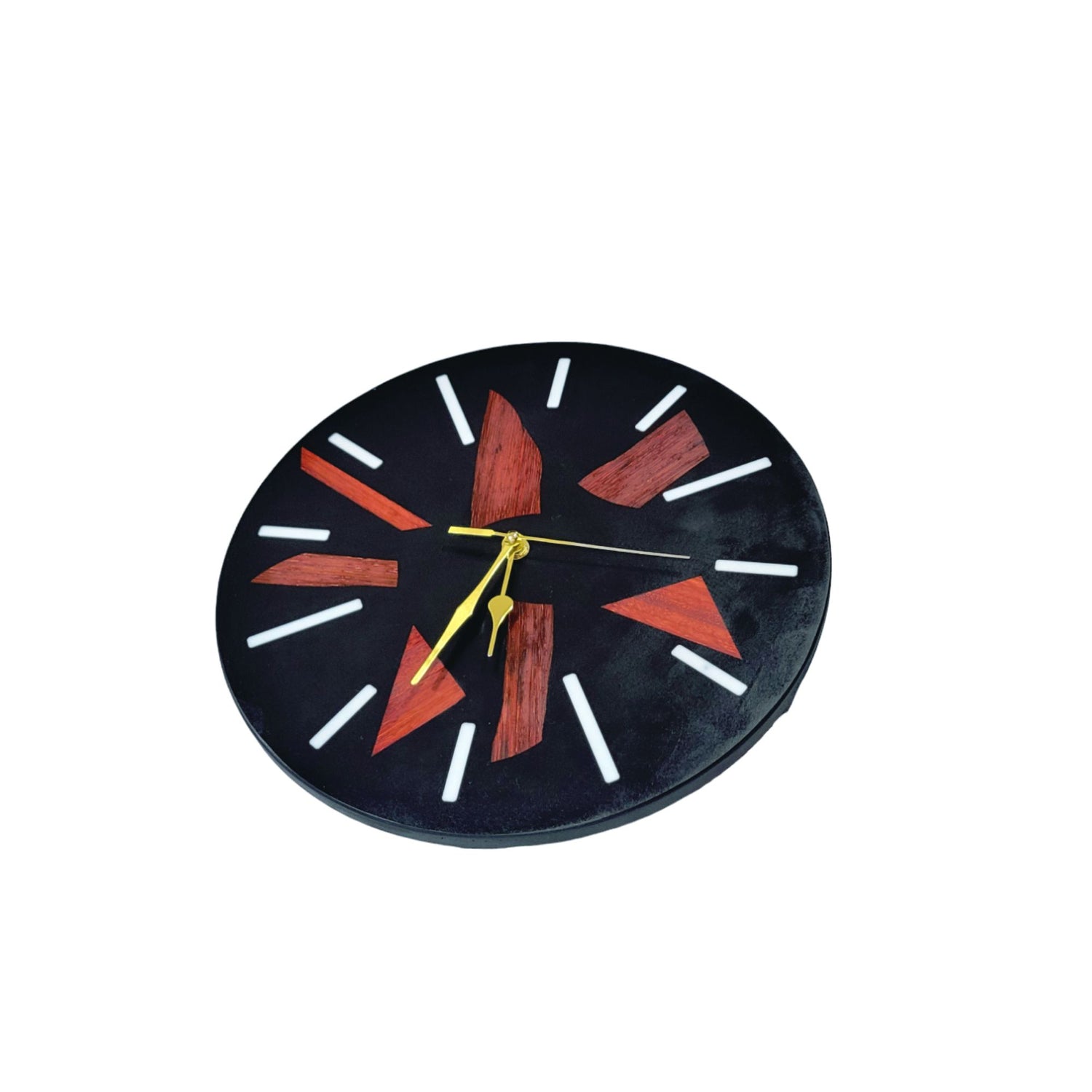 Wall Clock 12" Exotic Wood With Black Epoxy And White Epoxy Lines